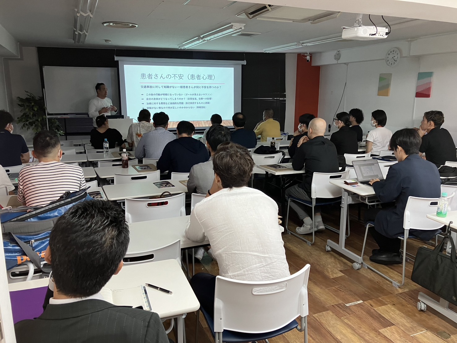 当日は雨だったのにも関わらず、多くの方にご参加頂き、弊社の行っている業務に対する接骨院さんからの期待の高さを実感しました。